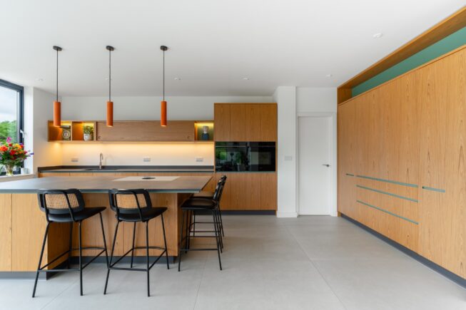 The client’s mid-century inspired interior design choices perfectly complement the style of the house as does the kitchen and built in joinery.